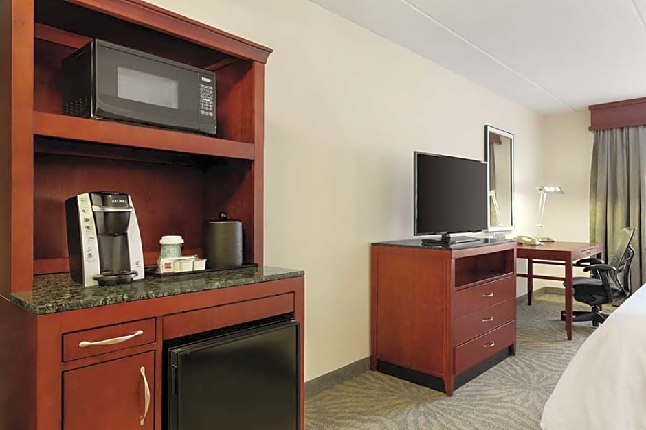 Living area, whirlpool tub, sofa bed, 36-inch TV, mini-refrigerator, microwave, complimentary WiFi Relax in this spacious suite featuring a plush king-sized bed, a 36-inch HDTV and a large bathroom which boasts a whirlpool tub and a shower. The separate living area contains a sitting area with an ottoman, a sofa bed and another 36-inch HDTV. Catch up on business at the expansive work desk with an ergonomic chair and stay connected with complimentary WiFi. A mini-refrigerator, a microwave and a Keurig® coffeemaker are included for your convenience.